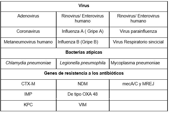 Se notifican de manera cualitativa los siguientes virus, bacterias y genes de resistencia a los antibióticos: