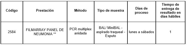 El panel de neumonía otorga resultados rápidos a partir de muestras respiratorias bajas (Bal/Minibal/ Aspirado traqueal/ Esputo inducido o expectorado) con alto impacto en pacientes con cuadros críticos y/o agudos. Presenta claros beneficios frente a los desafíos diagnósticos que posee la neumonía; siendo más sensible que el cultivo y la coloración de gram y mejorando la detección de coinfecciones.