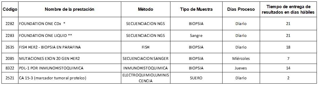 * y **: Foundation Medicine: Pruebas de perfilado genómico integrales que brindan información sobre biomarcadores y alteraciones genómicas clínicamente relevantes para ayudar a relacionar a los pacientes con terapias dirigidas aprobadas, inmunoterapias y opciones de ensayos clínicos.