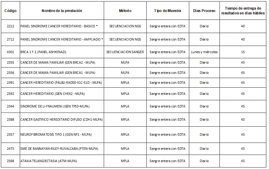 *la prestación cuenta con paneles de genes de alta, moderada y baja penetrancia asociados a un aumento del riesgo a desarrollar distintos tipos de cáncer de origen hereditario, pensados por nuestros expertos. Para conocer el listado de genes incluidos en cada panel no dude en ponerse en contacto con nosotros